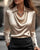 De elegante Joyce™ blouse combineert de klassieke charme van satijn met moderne details, voor een verfijnde look die van dag tot nacht indruk maakt. Met een flatterend drape-effect bij de halslijn en luxueuze glans is deze blouse een stijlvolle keuze voor elke gelegenheid — van kantoor tot avonddate.
